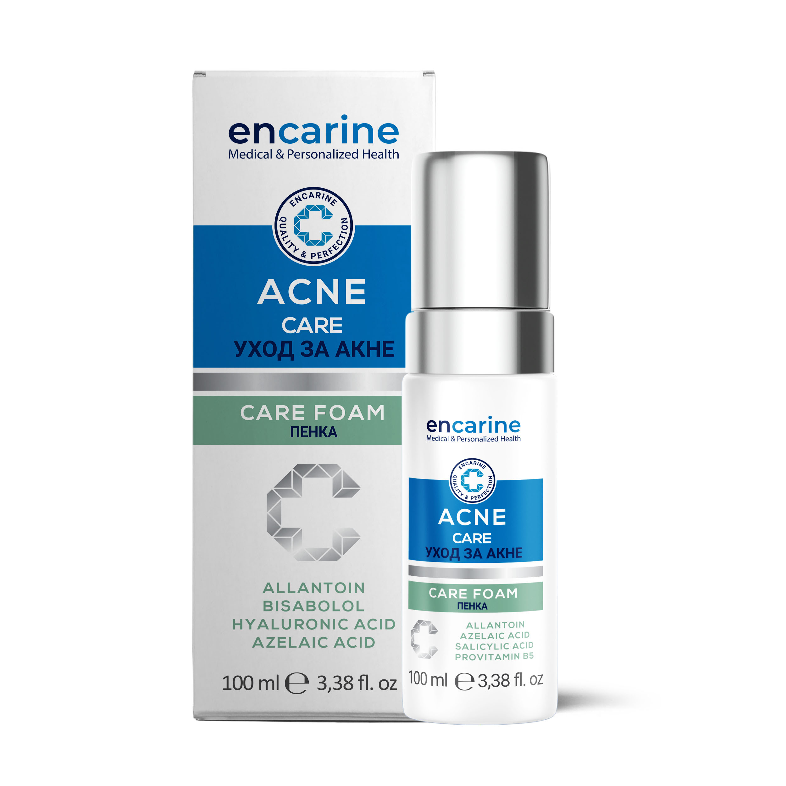 Encarine Acne Control Care Foam, developed for acne-affected skin with a special formulation containing salicylic acid and azelaic acid. Helps deep cleanse the skin, remove blackheads and prevent the recurrence of acne. Suitable for acne-prone skin.